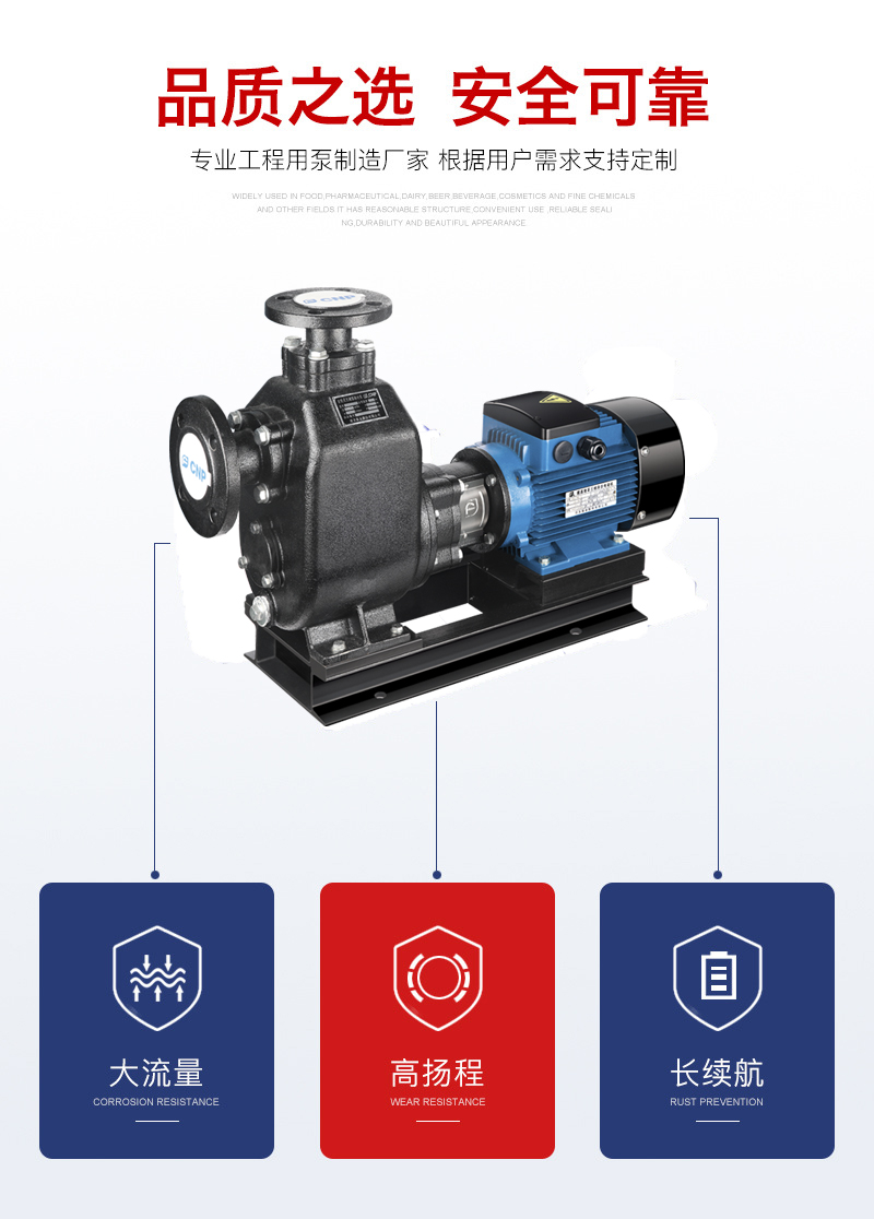 產品說明:zw型無堵塞自吸式排污泵是全新研發的一種結構新穎的產品。該泵采用外混式、套軸結構,具有結構簡單、自吸性能好、排污能力強等特點。產品可廣泛適用于市政排污、河塘養殖、輕工、造紙、纖維和混合懸浮等工況。